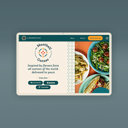Just as your senses might explore the international flavors of the Meatball Corner…we also had to explore how to perfectly encapsulate the visual aspects of the brand. The idea of corners, quadrants, globes and navigation were thoroughly explored, allowing us to land on the perfect brand identity.